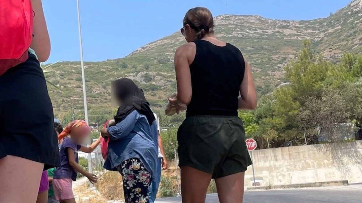 After preparing nearly 100 sandwiches at Makrogianni’s house, our team went outside the nearby refugee camp to offer them to women, children and other people in need who were passing by.